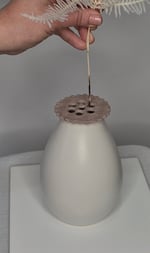- Arrange your flowers in a stylish white vase using a handmade flower frog.